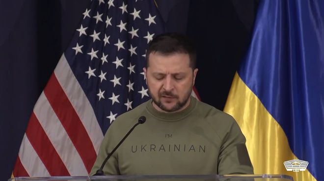 当地时间11日,泽连斯基在美国国防大学发表演讲 美国国防部视频截图