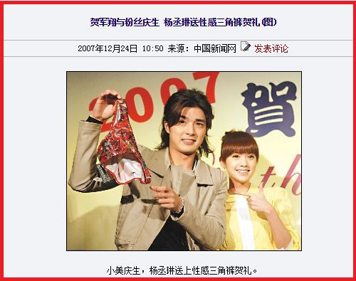 她还送过“内裤”给贺军翔。