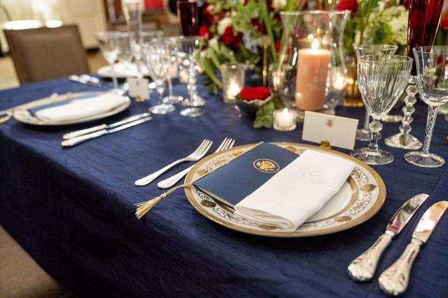 不过外媒却意外发现,此次国宴上使用的餐具不是官方瓷器,竟是租借来的。
