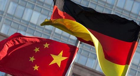 中国已经连续8年成为德国第一大贸易伙伴,图为中德国旗