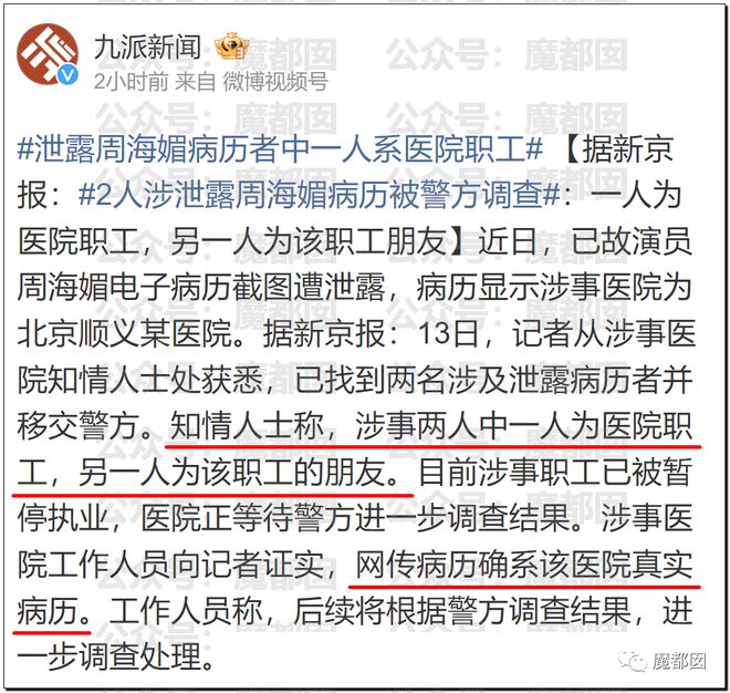 后续警方调查结果来了,果然是医院的职工泄露,发到网上的我们猜测是这个职工的朋友。所以调查了2个人: