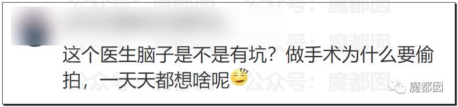 这个是现场开直播的,虽然手法不同,但是本质上和那些破解摄像头上传的没什么区别。我们无法想象恶臭到极致的行为竟然发生在一个高学历的正规医院的医生身上。网友都爆了: