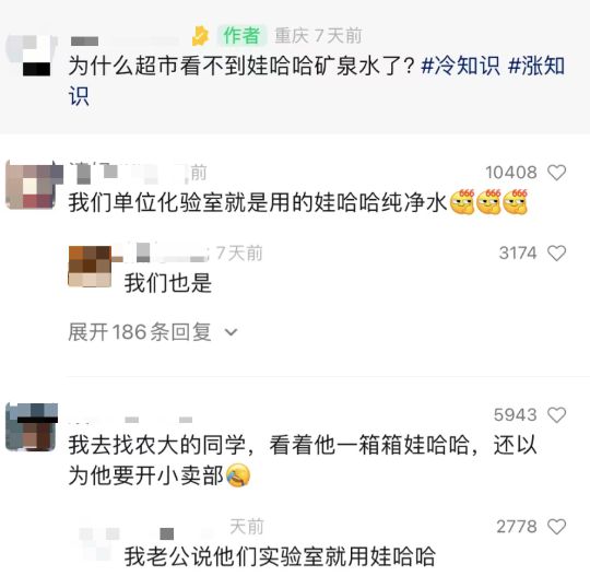 “因为实在太干净了,自来水三次蒸馏都不能满足实验标准,但娃哈哈却可以,被实验室扫空了。”