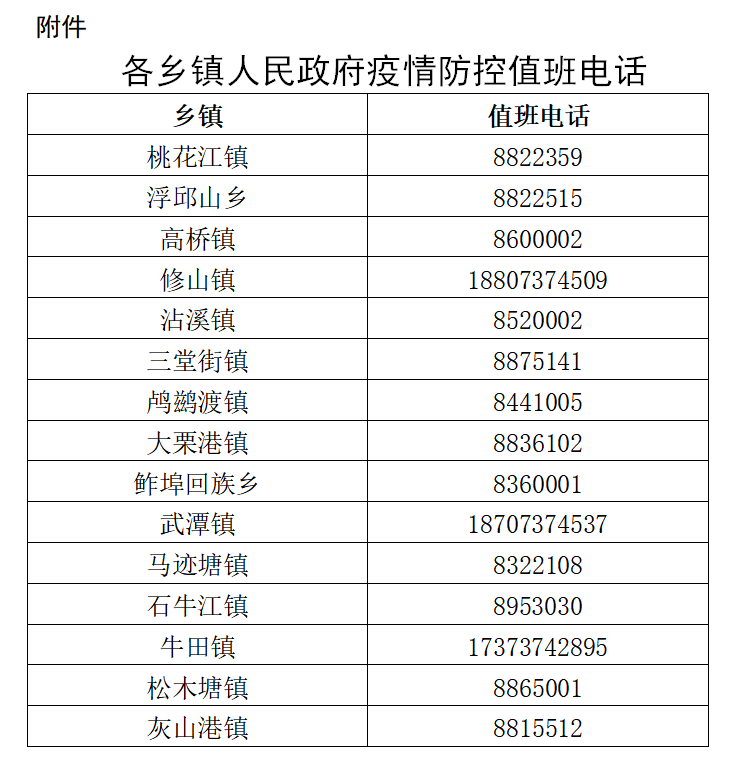 附件:各乡镇人民政府疫情防控值班电话