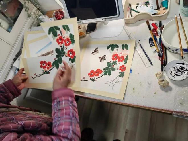 封控在家,程阿姨就画画国画。受访者供图