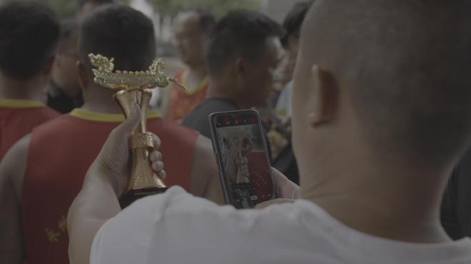 周修丞也差不多是何靖这个年纪开始接触龙船的。他青少年时期叛逆,父亲怕他被带走歪路,将他送去河南少林寺,后来继续当兵,到20岁才回家。没有事做的时候就躺在家里,刷手机玩游戏。直至22岁,父亲和村里几名长辈召集组建龙船队,才渐渐和同村的其他年轻人熟络起来。队友也变成平常约玩的朋友。“龙船可以凝聚一个村子的精气神。比赛的名次其实都不重要。重要的是一条船一条心,朝着一个目标努力。”