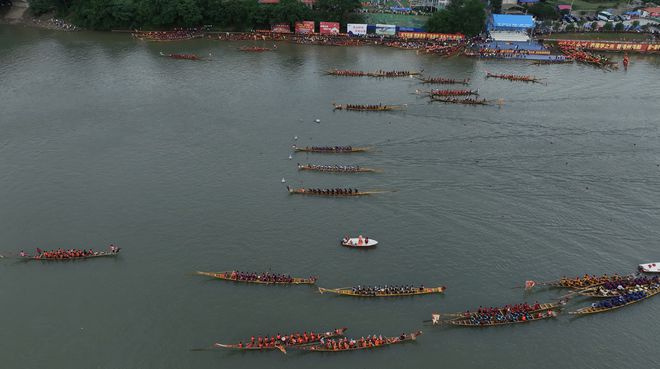 △ 5月30日,开赛前一天,今年参赛的两百多支道县龙船队悉数来到比赛河段附近