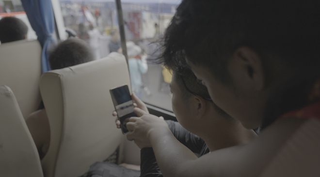 △ 大巴上,周修丞和何辉还在回看比赛直播