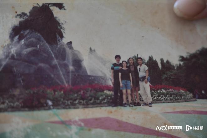 家里模糊的老照片,曾维龙(左一)与妻子于小英(左二)