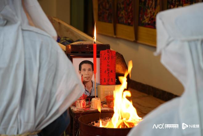出殡的那个清晨,湖南老家点燃白日焰火,曾晖抱着父亲的遗像被大雨淋透。
