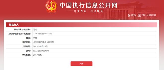 万通创始人冯仑成为被执行人 中国执行信息公开网页面截图