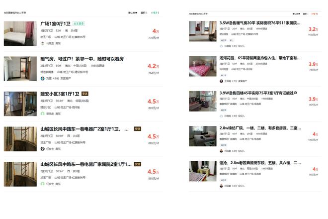 记者查询了多家二手房交易网站,网站显示二手房最低价格在3万元-4万元不等,这些价格较低的房源,大多位于鹤壁市山城区(央广网发 图片来源于网络截图)