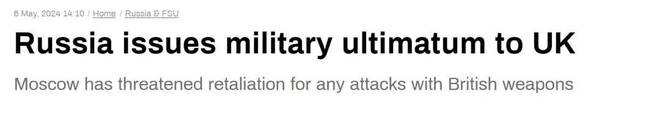 据今日俄罗斯电视台(RT)网站5月6日报道,俄罗斯已向英国发出最后通牒,一旦乌克兰使用英国武器袭击俄罗斯领土,俄方将对英国进行报复。