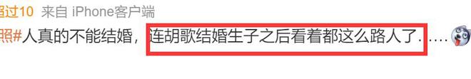 还有不少网友吐槽黄曦宁长相实在太普通,“随便找一个重庆女孩都可以秒杀”。网友话里话外都透着对胡歌妻子外形的不满,认为两人并不般配。