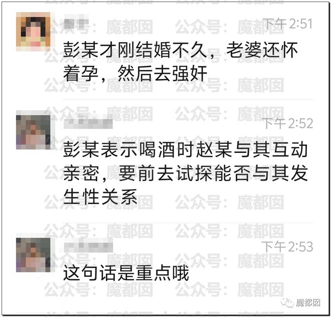 这个彭某只是觉得女生在喝酒的时候互动比较好就觉得自己可以去QJ了,完全忘记了自己是已婚的事情,禽兽本质暴露无遗。