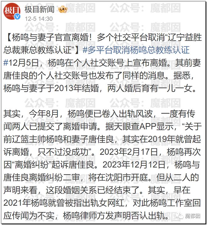 要知道,前几天最热门的就是号称最帅体育生的杨鸣(前CBA球星,著名球员和教练)出轨离婚事件,当时爆料了一大堆,我们没什么兴趣所以没写。