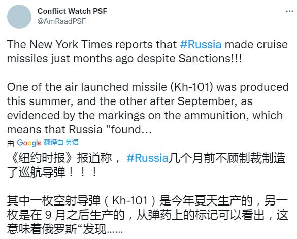 调查人员由此判断,这些导弹是2022年7月至9月以及10月至11月之间生产的。该报告得出明确结论——“经过几个月的制裁,俄罗斯仍然能够制造制导武器”,“很难说俄罗斯的武器短缺”。