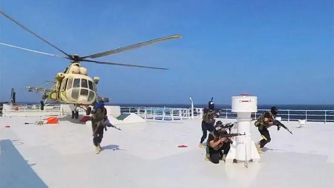 12月31日早些时候,美军中央司令部发布声明说,一艘在红海海域悬挂新加坡国旗的集装箱货轮当天早晨向美军发出求救信号,称4艘也门胡塞武装快艇试图靠近货轮实施登船。美国“艾森豪威尔”号航空母舰和“格雷夫利”号驱逐舰派出多架直升机驰援。美军直升机对胡塞武装快艇发出警告,船上武装人员向直升机开枪射击。美军随即向快艇开火,击沉3艘快艇,另一艘快艇逃离现场。