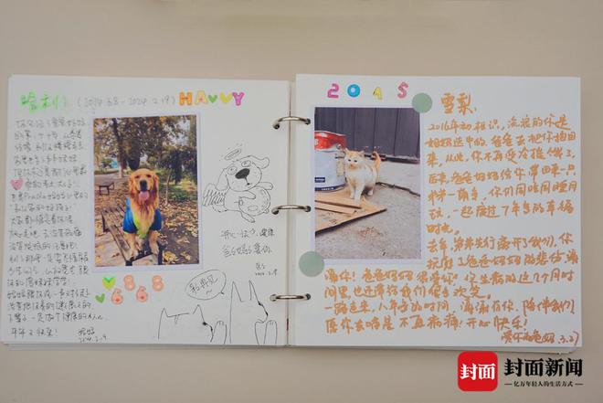 英豪介绍,室内主要分为接待区、清洁间、告别室、寄存区、商品展示区等。休憩区的墙上,有两大面贴满了离世“毛孩子”的照片,而这只是“冰山一角”——开业三年来,共计送走约五千只宠物。