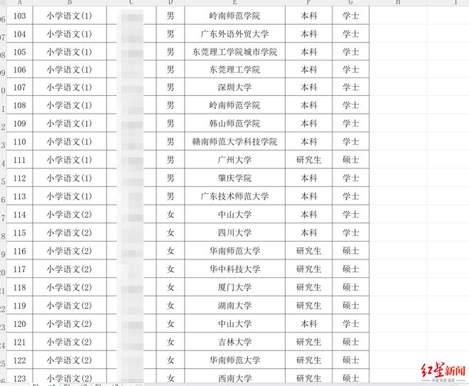 小吉告诉红星新闻记者,名单上这样的学历、学校背景差异,曾经为当地教育局招来投诉。对此,教育局工作人员曾作出答复。“两年前有人就这个问题进行过投诉,他们(教育局)的答复就是要保持招聘男女生的性别平衡。”小吉说。