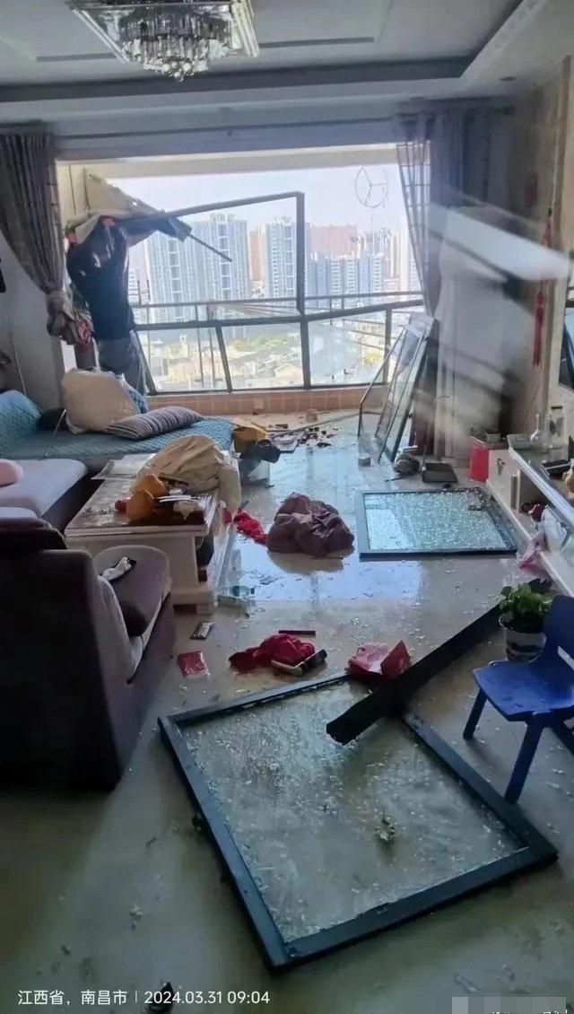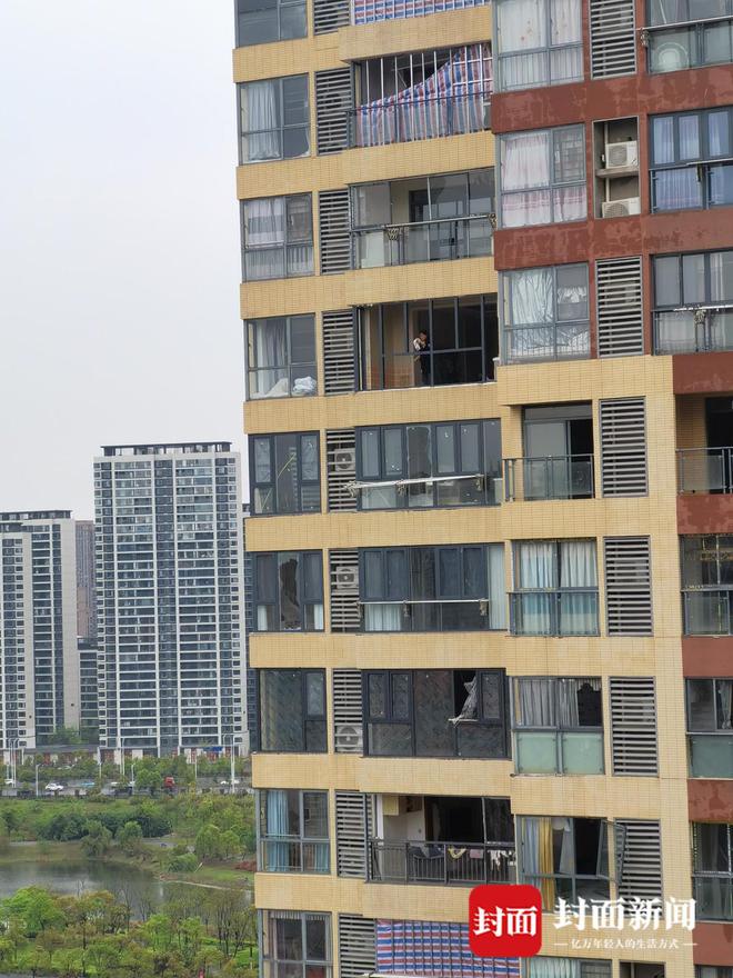 有的业主被大风惊醒后,瞬间被掀翻在客厅,沙发、窗子腾空砸在身上;有的业主从卧室起身时,卧室门锁被大风冲毁,阳台的玻璃碎在客厅里,阳台对面一侧的窗子消失无踪,“风太大,站不起来,我是爬着往客厅去检查阳台。感觉楼栋在晃,像地震一样。”