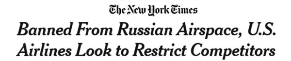 《纽约时报》今年3月早些时候曾报道称,美国参议院外交委员会主席梅南德兹(Robert Menendez)等早就对中美航班大放厥词,称督促美国政府禁止中国及其他非美国航司在执飞美国航班时飞越俄罗斯领空,否则“不公平”。