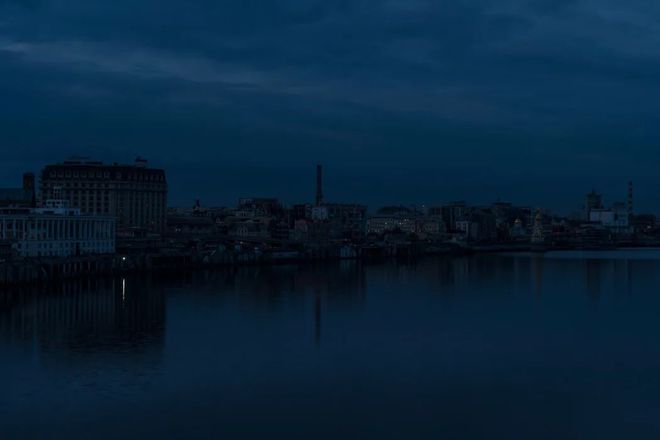 基辅第聂伯河沿岸的街区沉寂无光。图源:GJ