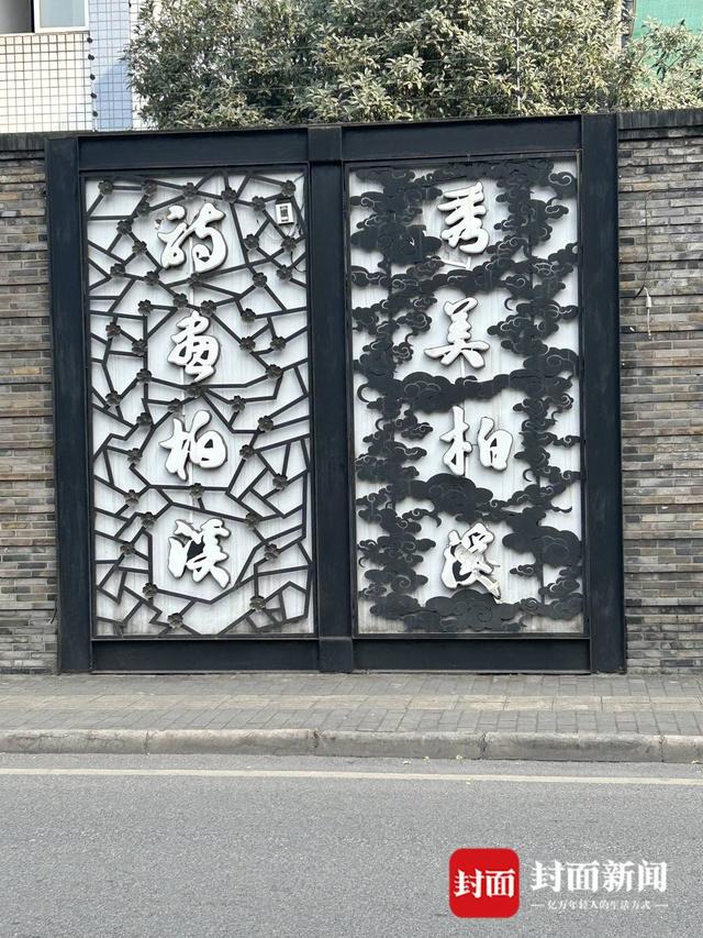 封面新闻记者根据线索来到柏溪街道花园西街与梧桐街之间的连接道路,路边是某大型企业一道长约百多米的围墙,采用浮雕和喷绘形式打造成一道文化墙,展示了多幅叙州区(原宜宾县)的人文风景和原柏溪镇的老街景图片,呈现出岁月沧桑的效果。
