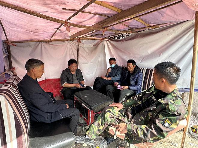 闲暇时,零工们在路口旁的一个简陋帐篷里自娱自乐