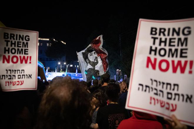7月6日晚,以色列民众在耶路撒冷举行大规模集会游行,要求以色列政府在加沙地带停火,与巴勒斯坦伊斯兰抵抗运动(哈马斯)达成协议,促使被扣押人员尽快得到释放。新华社记者陈君清摄