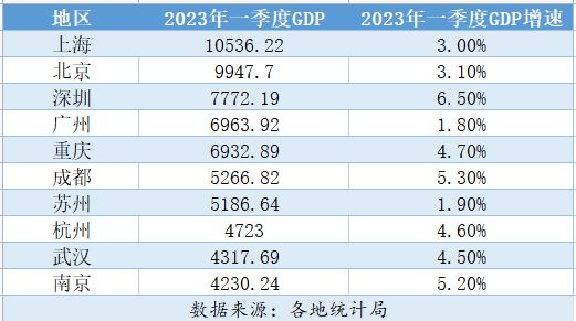 十强城市一季度GDP出炉:深圳增速领跑广州垫底,成都超苏州