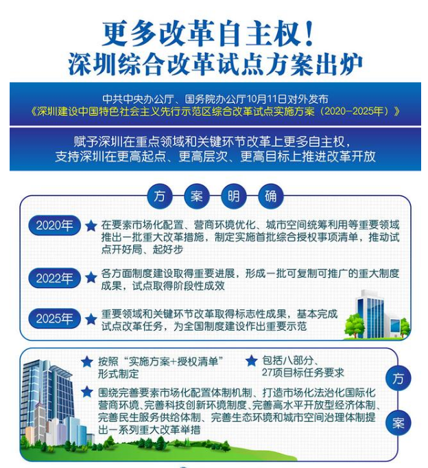 近日有关于深圳综合改革试点方案出炉的问题受到了很多网友们的关注,大多数网友都想要知道深圳综合改革试点方案出炉的具体情况,那么关于到深圳综合改革试点方案出炉的相关信息,小编也是在网上进行了一系列的信息,那么接下来就由小编来给大家分享下小编所收集到与深圳综合改革试点方案出炉相关的信息吧(以下内容来自于网络非小编所写,如有侵权请与站长联系删除)