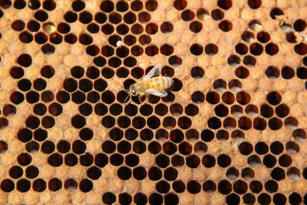 3、蜜蜂越冬之时会结成或紧密或松散的蜂团,其中气温越低时蜂群结团相对则越紧密,反之气温越高时蜂群结团相对也越松散,此外工蜂在越冬期还会通过吃蜜产热来维持蜂团的温度。