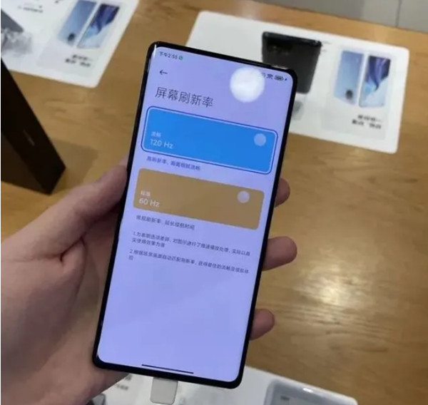 小米mix4手机刷新率为120Hz,屏幕为6.67英寸,其采用一块AMOLED微曲柔性CUP全面屏,分辨率是2400x1080。