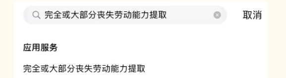 随申办APP首页搜索【完全或大部分丧失劳动能力提取】并点击进入