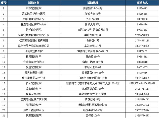 温州鹿城区犬只免疫登记点地址+电话 温州鹿城区狂犬疫苗地址