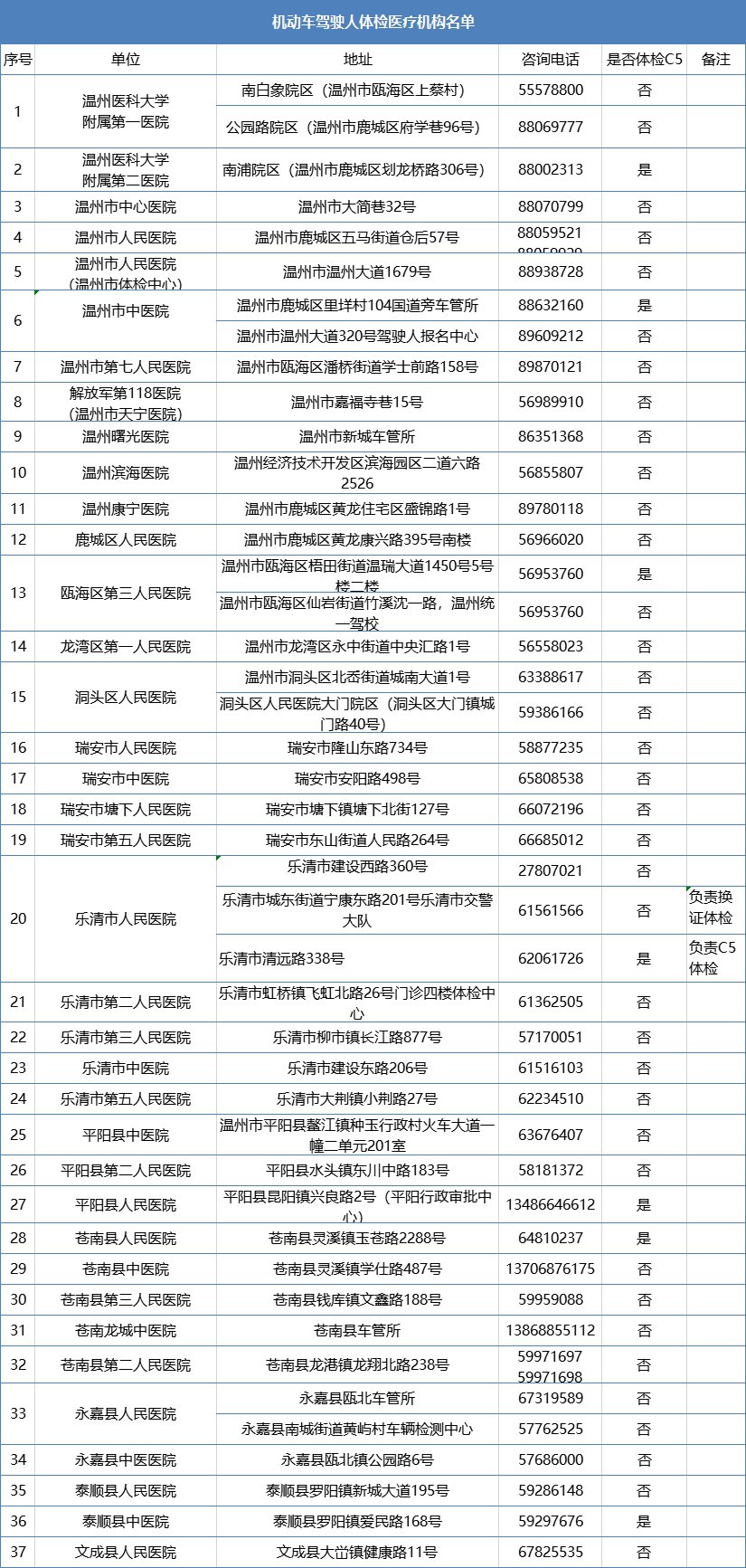 温州驾照考试体检项目及医院地址(温州学车体检在哪里)