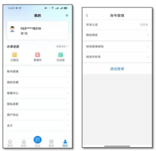 (4)完成实名认证后,我的页面显示对应脱敏用户姓名;帐号管理中实名认证状态为已实名。