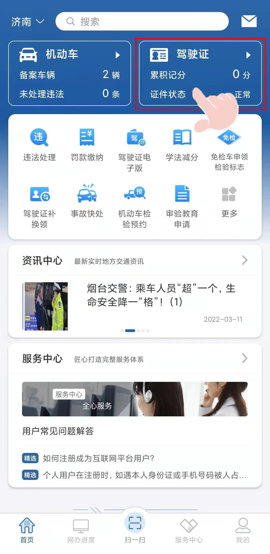 ①登录“交管12123”APP,点击右上角“驾驶证”模块进入;