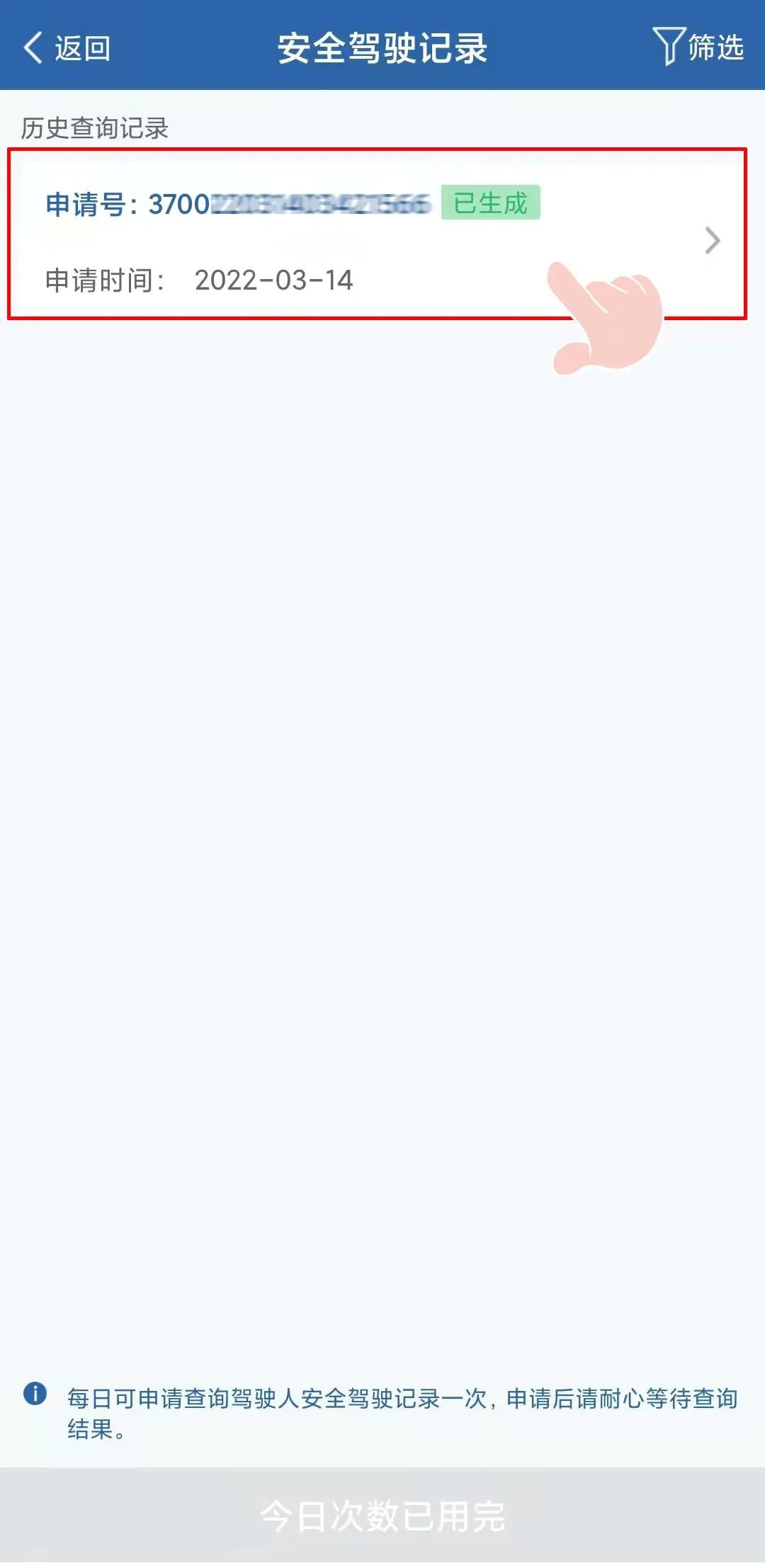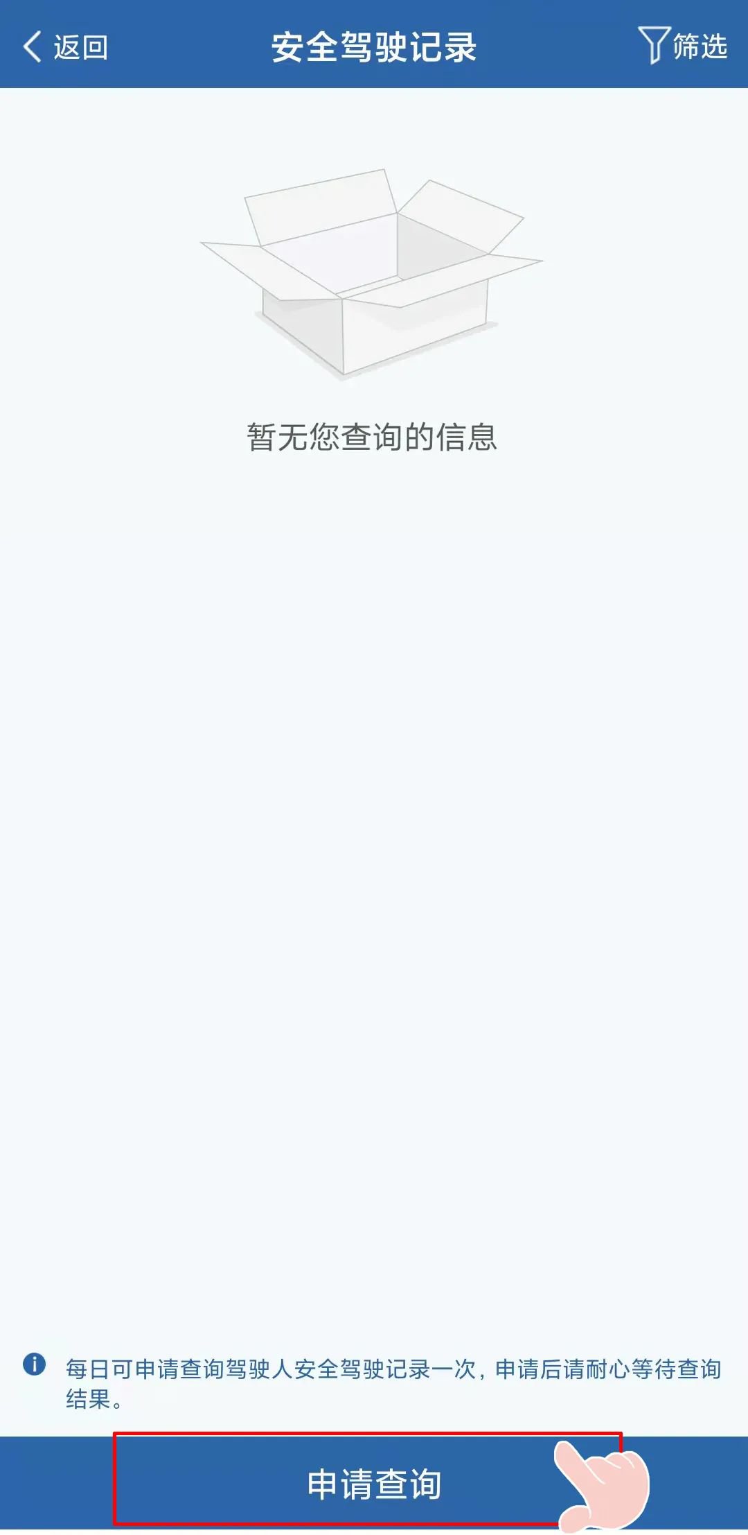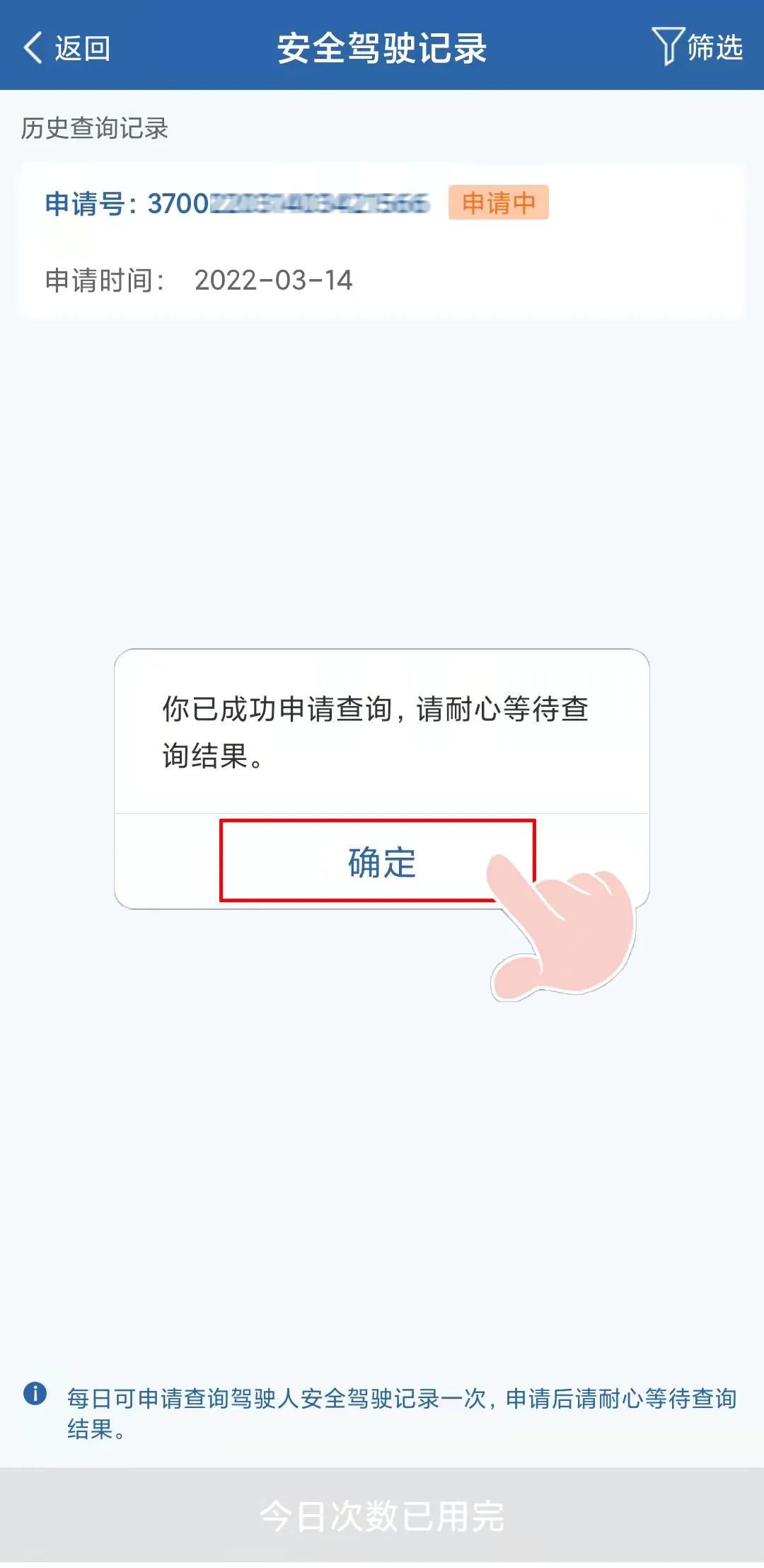 (提示:每日可申请查询安全驾驶记录一次,申请后请耐心等待查询结果)