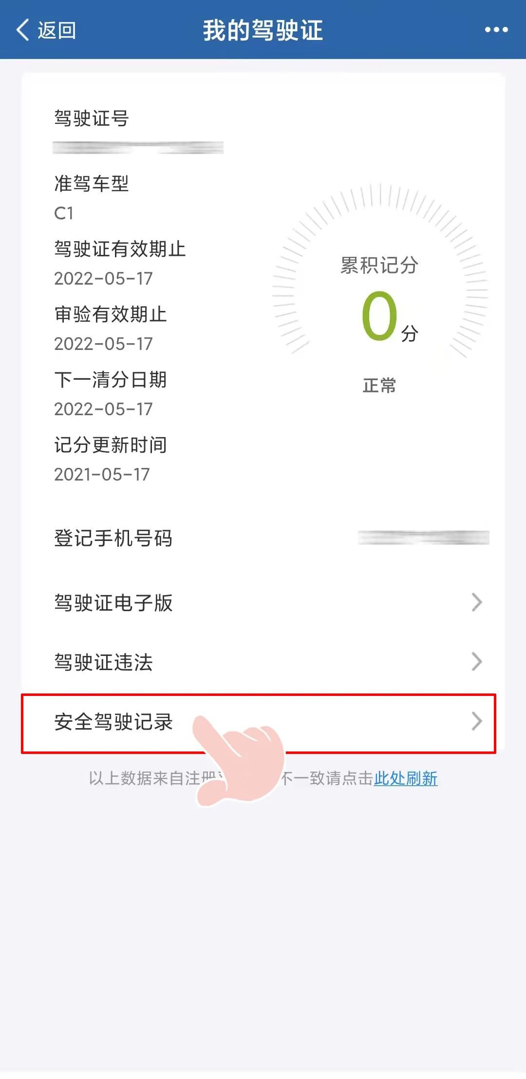 ②点击“我的驾驶证”中的“安全驾驶记录”进入下一步;