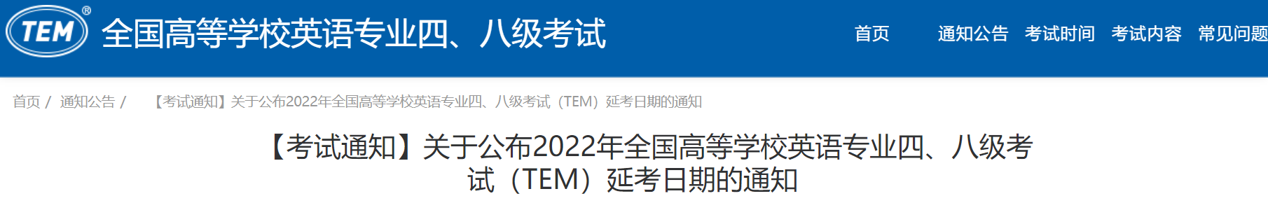 【考试通知】关于公布2022年全国高等学校英语专业四、八级考试(TEM)延考日期的通知