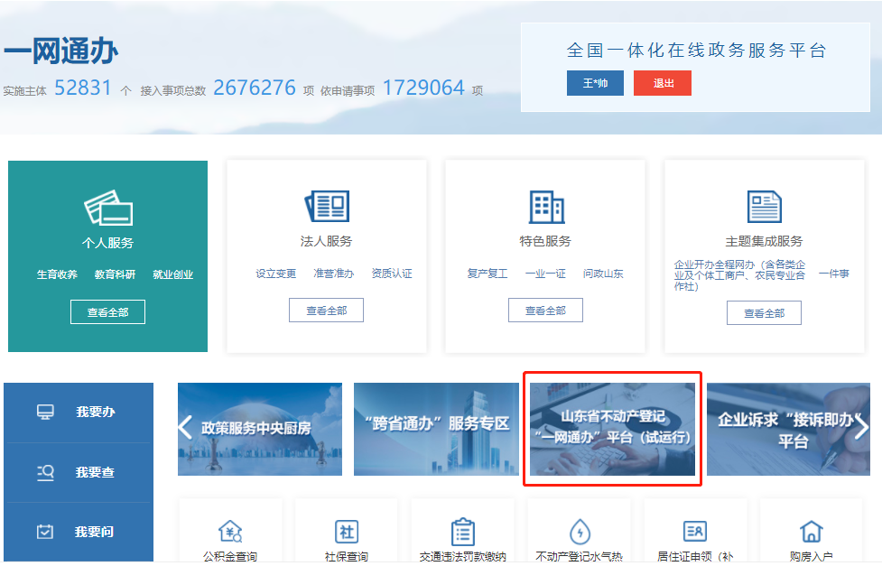 2. “山东省不动产登记“一网通办”平台查询