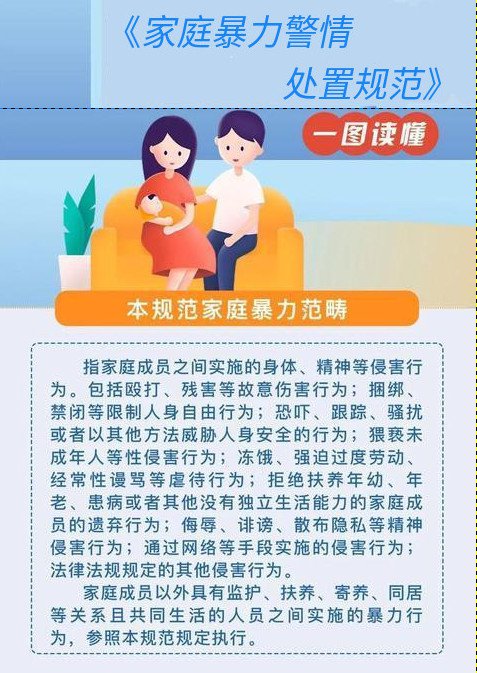 通过对现实家暴警情的分析,对家庭暴力的范畴进行进一步细化,除规定殴打、残害、捆绑、禁闭等为家暴行为外,更是明确了猥亵未成年人、经常性谩骂、拒绝扶养年幼、年老家庭成员,侮辱、诽谤、散布隐私,通过网络等手段实施的侵害行为均属于家庭暴力的范畴,更加贴合实际,对基层民警更具指导性、可操作性。