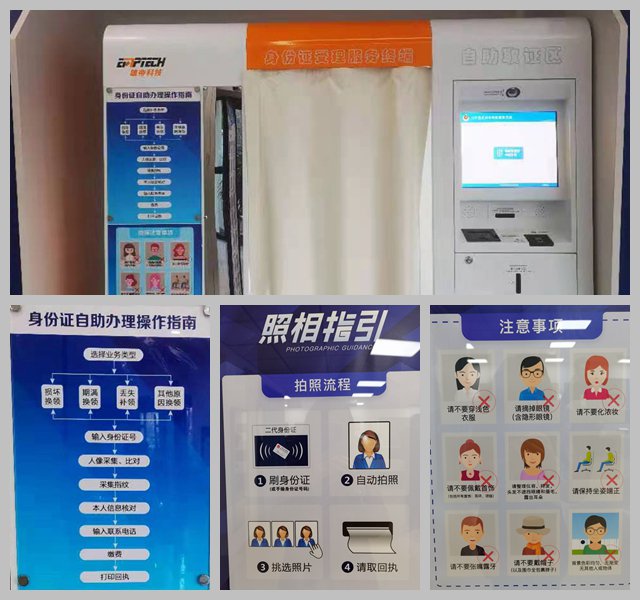 群众可在设备上自助办理身份证照相、申请、缴费、取证等业务,办证、取证均可通过人脸识别、指纹核对完成,实现机器代替人工,缩短了排队等候时间,提高了工作效率。