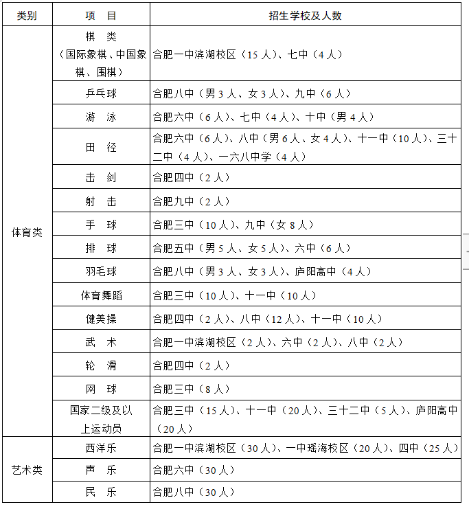2.中考成绩须达到市区普通高中录取最低分数线。合肥三中、十一中、庐阳高中、三十二中四校体育特色班招收国家二级及以上运动员考生中考成绩须达到市区普通高中录取最低分数线的60%;在全国及国际正规大型体育比赛中获得奖牌或国家一级以上运动员,报考合肥三中、十一中、庐阳高中、三十二中四校体育特色班志愿考生文化课需达到初中毕业水平。填报校园篮球及合肥十一中、三十五中、庐阳高中校园足球定点学校志愿的考生,中考成绩须达到市区普通高中录取最低分数线的80%。