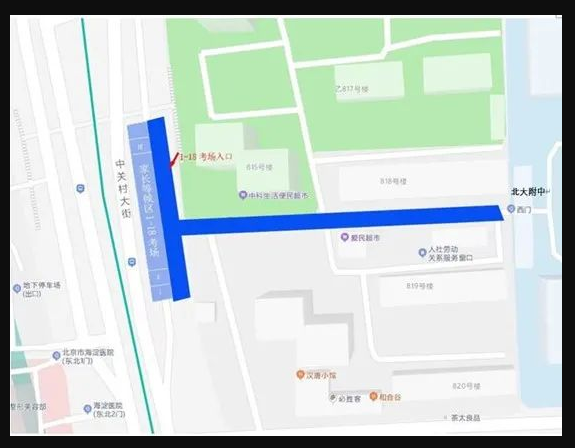 8. 确保考生“平安高考、健康高考、温馨高考”,北大附中考点校已经设立考生专用通道。北大附中考点校考生专用通道范围为:海淀区中国科学院黄庄小区西门过街天桥下(路东侧)到北大附中考场楼;请家长一人接送考生,即停即走,考生可在必胜客(希望店)门口下车,单独进入专用通道。考试期间送考家长不得在考点门口、周边聚集。